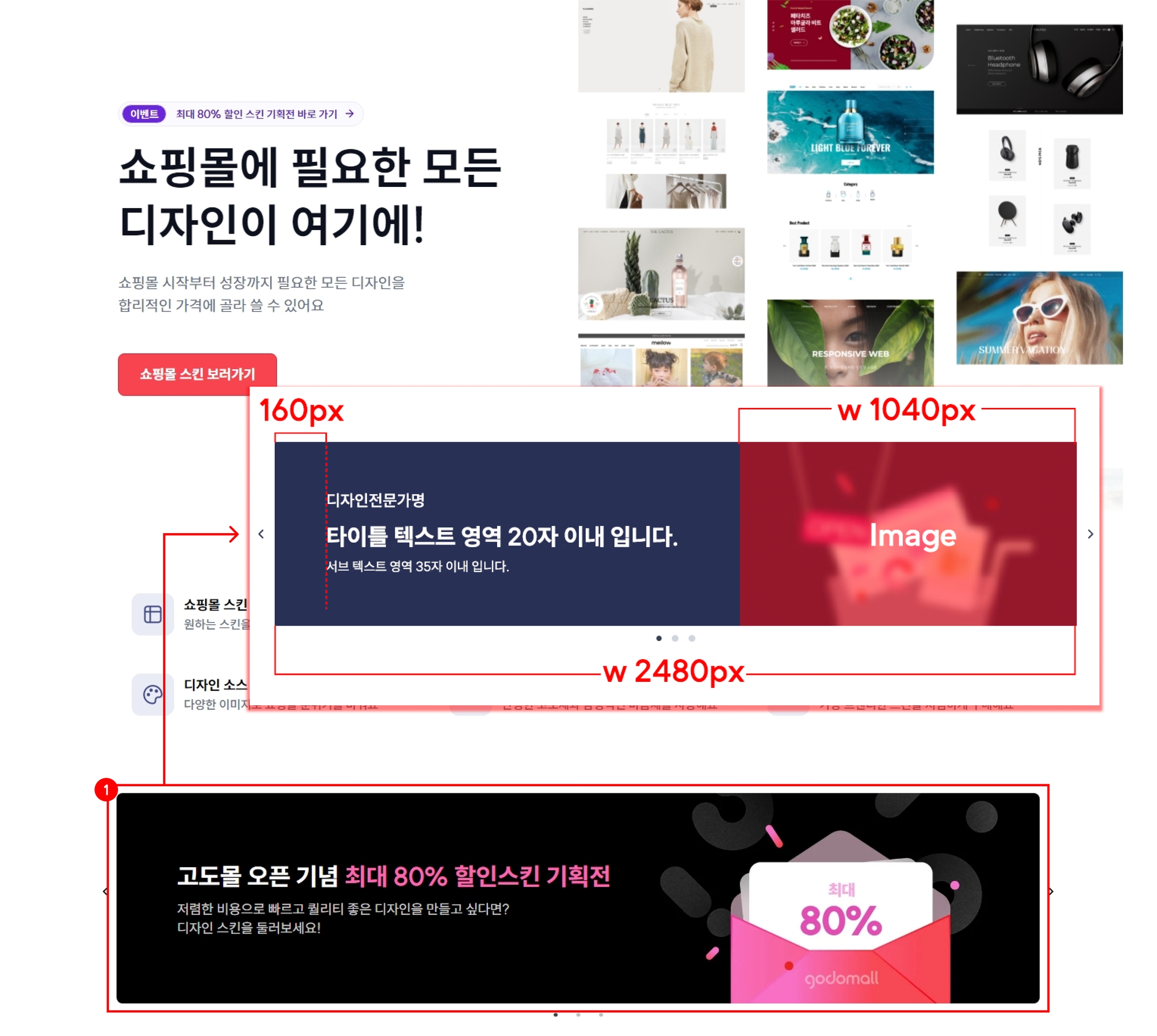 디자인센터 메인페이지 상단 롤링 배너에 이벤트를 홍보하고 싶다면 아래 내용을 참고하시어 메일로 자료를 보내주세요.